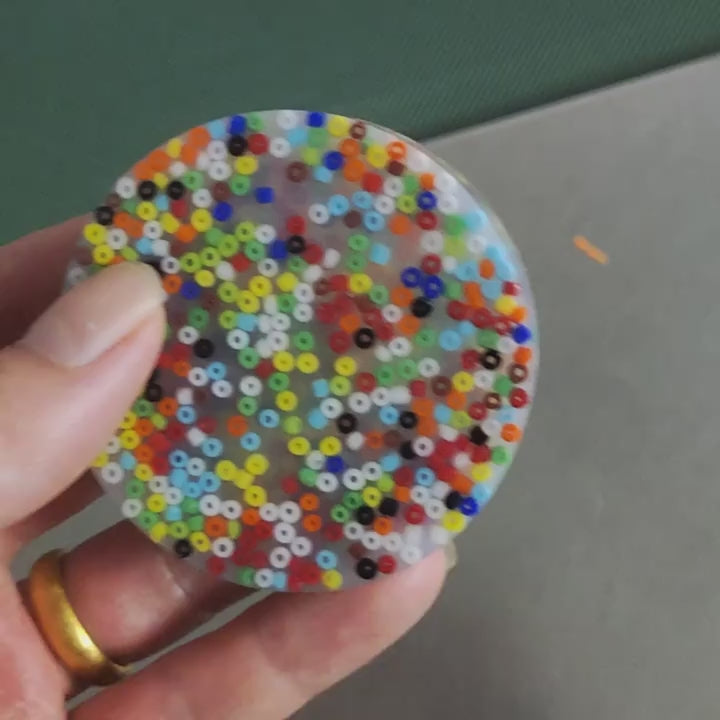 They contain colourful beads that will keep you busy for hours, either removing them with your fingers or tweezers and collecting all the beads.