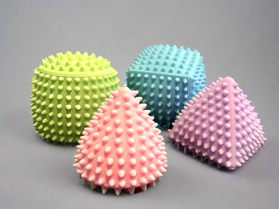 Beautiful soft coloured squishy shapes with a nice textured spiky exterior for a real sensory treat!